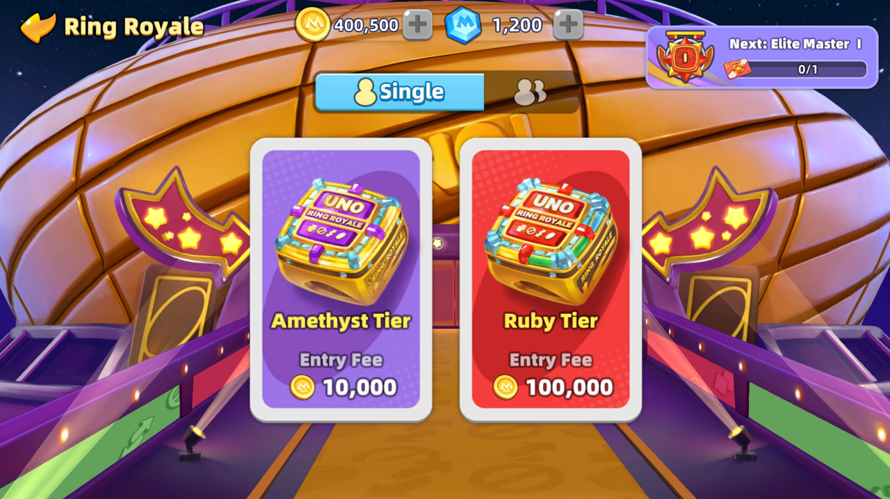 Play UNO! Mobile matches and achieve the Legend Tier in the Coins League to join the exciting Ring Royale tournaments. Through the newest update, players who reach the following ranks each week will also have the chance to secure an entry into the Ring Royale within 7 days of ticket reception: