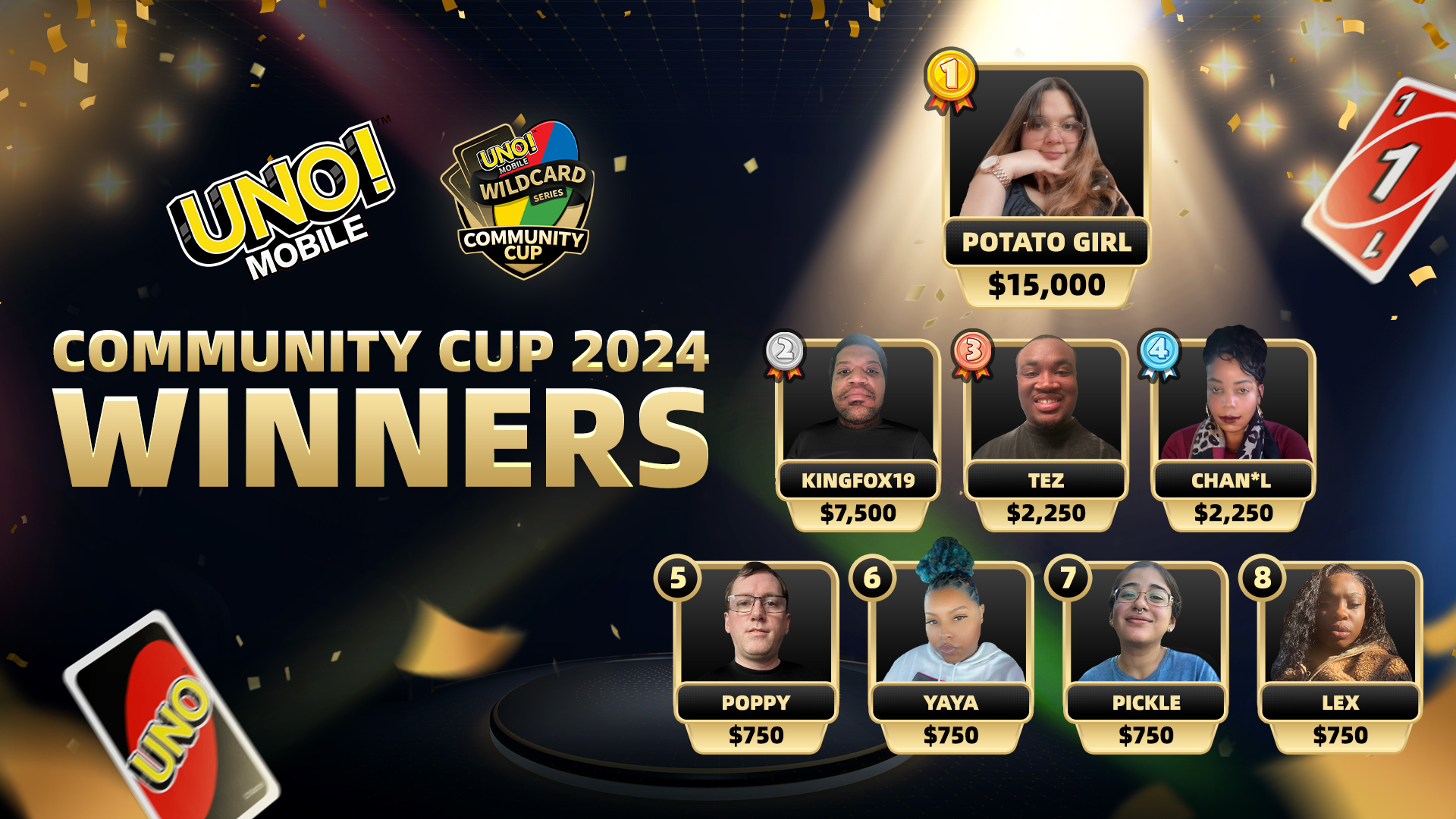 A huge round of applause goes to our seven other incredible winners for reaching the Top 8 of the Annual Grand Finals and showcasing their skills throughout the competition! Your hard work and passion for UNO! Mobile have truly shone, and we’re excited to see what the future holds for each of you!